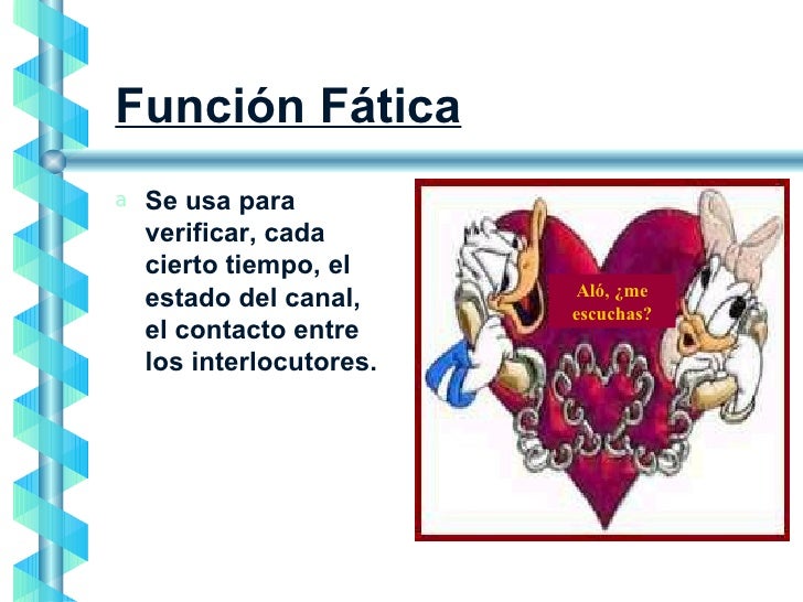 LA FUNCIÓN FÁTICA ES LA QUE SE OCUPA DE MANTENER O COMPROBAR QUE LA COMUNICACIÓN TIENE LUGAR. EJEMPLOS: